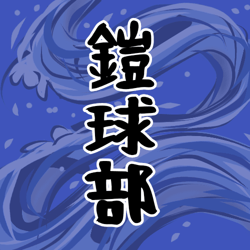 大きな波のイラストで全体的に紺色「鎧球部」のロゴあり